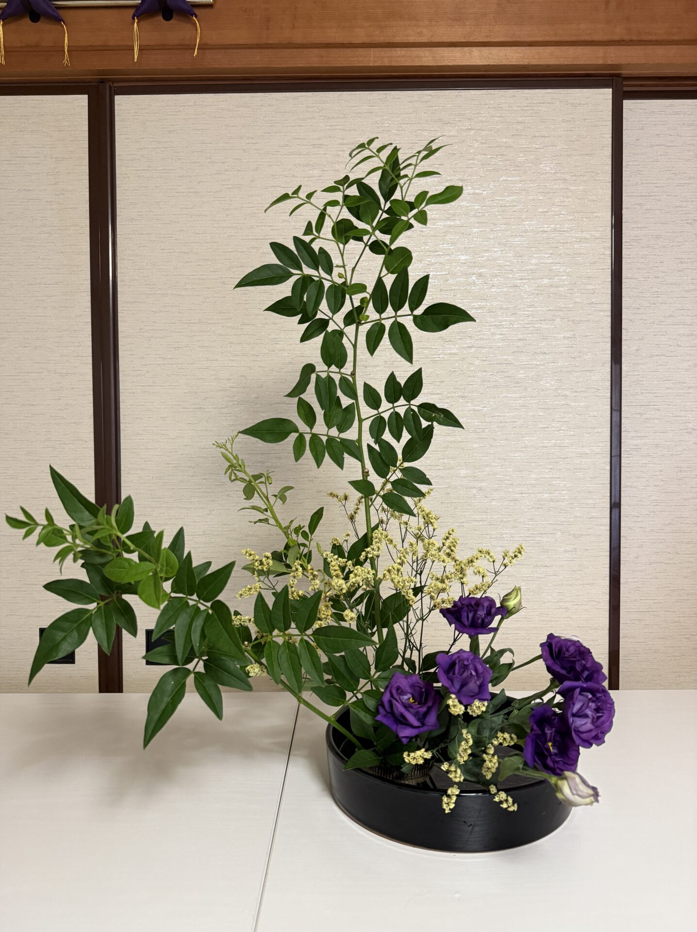 キリッとしたパープルとグリーンの組み合わせ。涼やかな夏らしい作品になりました。