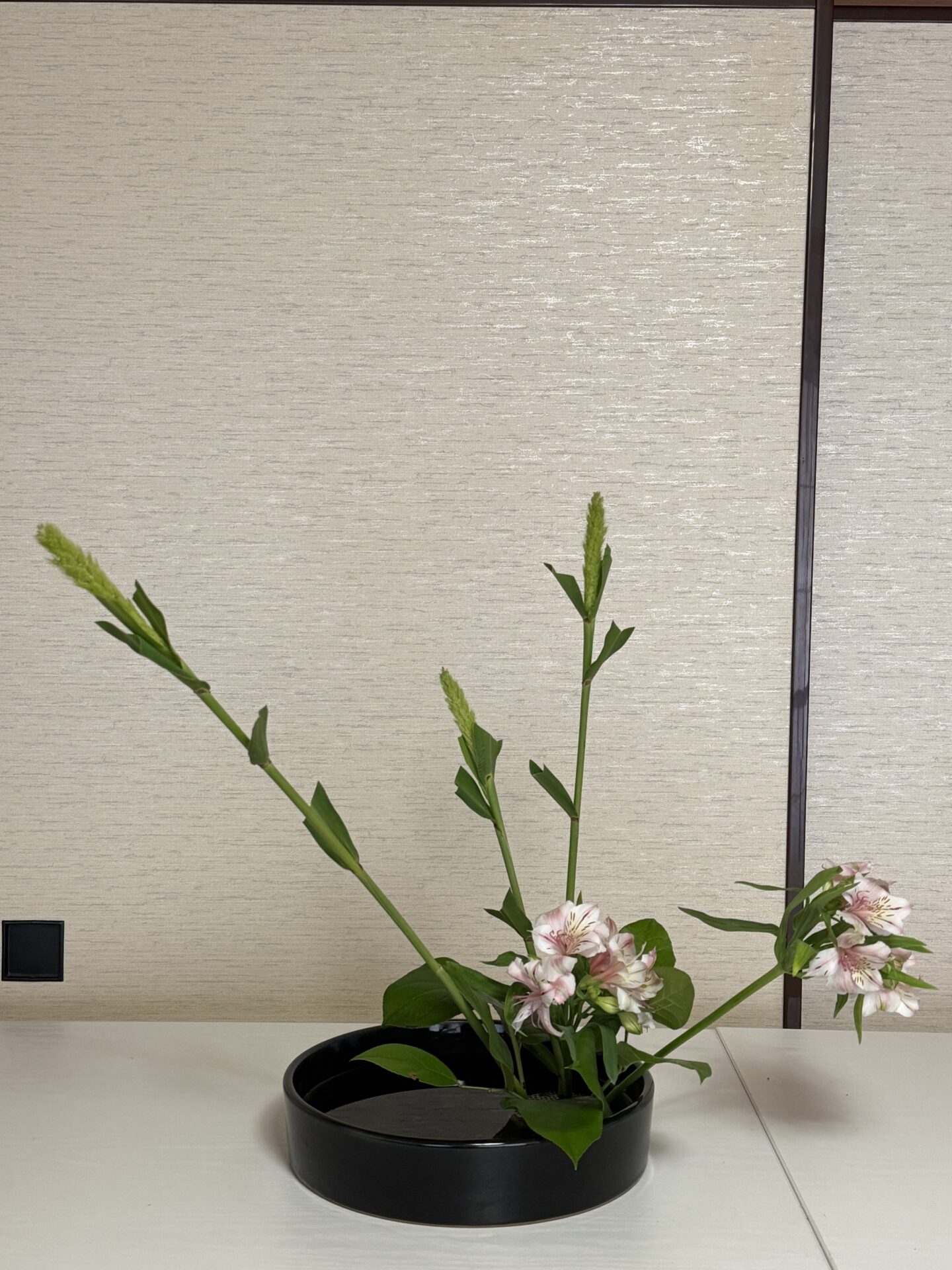 花材 あわ、アルストロメリア、レモンリーフ