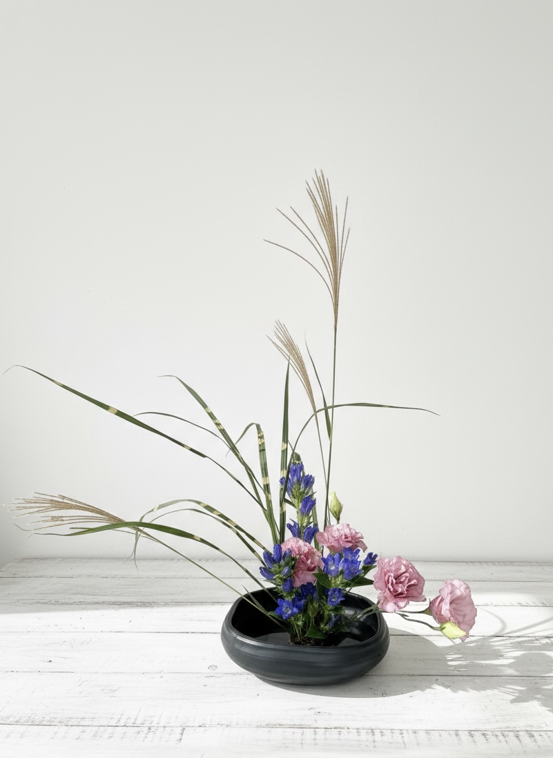 花材の動きと余白のバランスを意識しながら、空間そのものを美しく見せるいけ方を、これからも大切にしていきたいと思います。